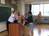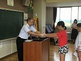 夏休み明け朝会では、表彰を行い、その後、校長先生、児童指導主任の先生の話を行いました。