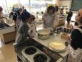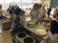 戦後の食糧不足でも工夫して作られた「すいとん」の作り方を学び、戦中、戦後の困難な状況と平和を願う気持ちを理解することを目的とた活動ですが、児童は、真剣に話を聞き、ちょっと贅沢になったすいとんを作り、シニアクラブの方と一緒に、楽しく食事をしていました。