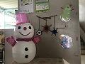 12月のオブジェは、かわいい雪だるまに雪の結晶です。職員玄関と低学年及び高学年の昇降口に飾りました。まだ、初雪は降りませんが季節は冬。寒さに負けず、元気に登校してほしいと願って飾りました。