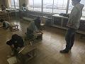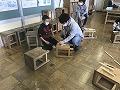 4年生の図工の授業で、のこぎりを使った授業を行いました。のこぎりを使う授業は今回が初めてということから、学習支援ボランティア(授業支援の見目さん)に協力をしていただきました。