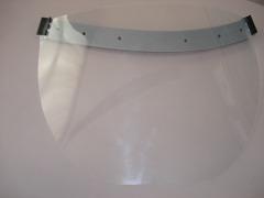 自作のフェースシールドです。必要に応じて教員が使用します。