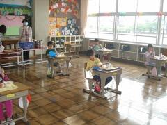 本校は、スクールバス及びタクシーの関係で、7時20分には一番最初の児童が登校します。8時05分に朝の会が始まるので、約45分間教室で自習及び読書をして過ごすことになります。