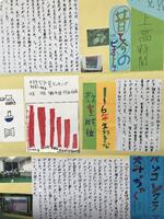 4年生の国語の授業で、「学校の良さを伝える新聞を作ろう。」という学習を行いました。児童は、グループに分かれ、各々で取材するテーマを考え、アンケートや書物等で調べ、その結果を壁新聞としてまとめました。