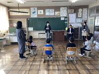 1.2年生の朝の会の様子です。英語でのあいさつ、英語の歌、みんな楽しく取り組んでいます。