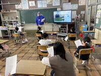 1~4年生の外国語活動を利用して、フィジーの文化についての話をしていただく授業です。フィジーの位置から始まり、気候、地形、食文化、風習等の話の他、ラグビーの国際試合の前に行うHAKAの踊りも実技を交えて教えていただきました。日本と違う文化を、児童は興味をもって、楽しく聞いていました。