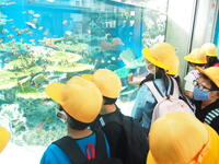 グループ毎に館内を見学し、お魚研究室でザリガニの観察をしました。