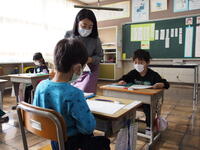 本日は、幼小連携事業の一環として、1年生の研究授業「国語科(きいて しらせよう)」を行いました。のびのび保育園から2名の先生に参加していただき行いましたが、保育園当時に比べ、一回りも二回りも大きく成長した姿に感心されていました。