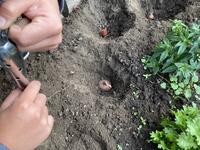 本日のクリーングリーンの時間に、ふれあい班に分かれ、校舎前花壇にチューリップの球根を植えました。