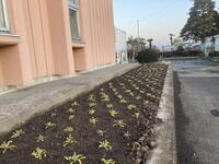 11月に、ネモフィラ種をポットに撒きましたが、順調に育ち、昨日、校舎東側の花壇に定植しました。まだまだ小さな苗ですが大切に育て、春には可憐な花を咲かせたいと思います。