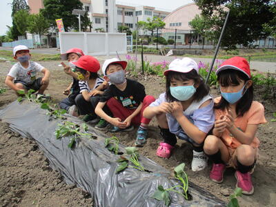 1年生2年生が、サツマイモの苗植えをしました。毎年苗をご提供いただいている相澤久雄 様、学校用務員の野中功先生に、美味しいさつま芋になるための苗の植え方を教えていただきました。これから定期的に観察をしていきます。