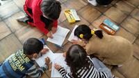 1年生2年生は合同で「学級活動」の授業です。28日の遠足に向けてグループごとにめあてを決めました。