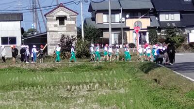 スポーツタイムの時間に、12月4日に行われる持久走大会のコース確認をしました。1年生2年生は遠足でしたので、3年生から6年生での確認です。原則、左側を走りますが一部右側を走るところもあります。危険個所を確認しました。