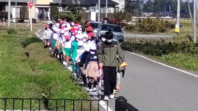 スポーツタイムの時間に、12月4日に行われる持久走大会のコース確認をしました。1年生2年生は遠足でしたので、3年生から6年生での確認です。原則、左側を走りますが一部右側を走るところもあります。危険個所を確認しました。