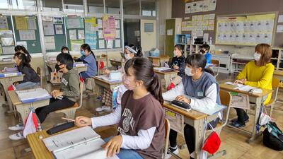 町内の様々な事業所で行われ、本校にも3名の生徒さんが来ています。3名さんとも本校の卒業生です。早速、5年生6年生の外国語科の授業の補助や、休み時間に子どもたちとともに遊ぶなど積極的に活動していました。子どもたちから大人気の3名さんです。あと2日間ではありますが、たくさんのことを学んで学校に戻ってほしいと思います。