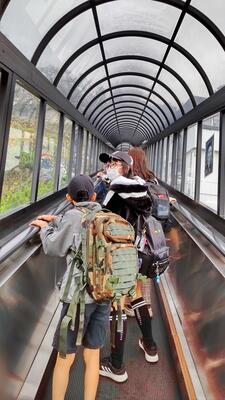 出口です。記念写真を撮ろうとしています。自然の神秘、偉大さを実感し、みんなの心もさらにきれいに洗われたような、すがすがしい表情をしています。