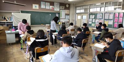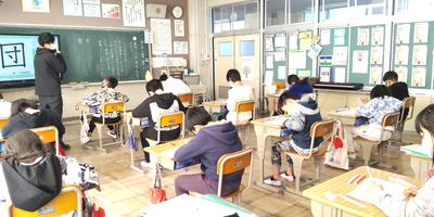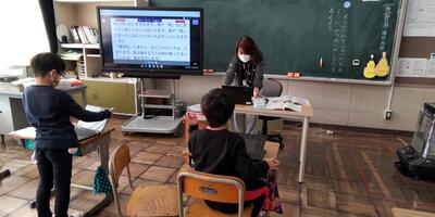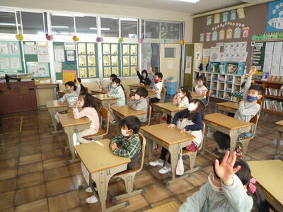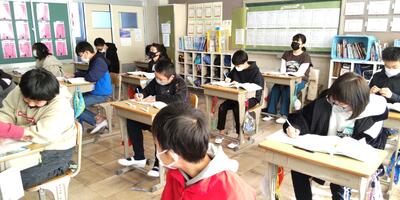 6年生は「国語」の授業です。教室の黒板に「卒業まであと何日」のカードが登場しました。