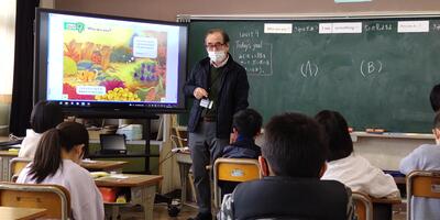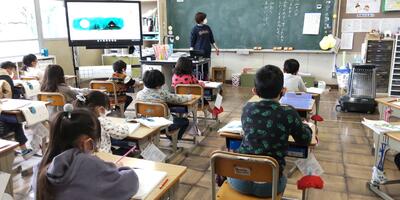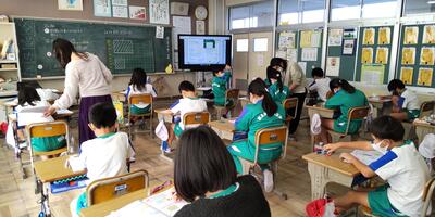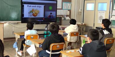 例年6年生を対象にして実施していた「国際交流集会」を、今年度は新型コロナウィルス感染症拡大のためのまん延防止措置の適用期間であることから、オンラインで行いました。