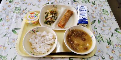 給食が始まったのは、明治22年今から127年前の山形県の小学校でおにぎり焼き鮭、漬物を出したのが始まりだそうです。