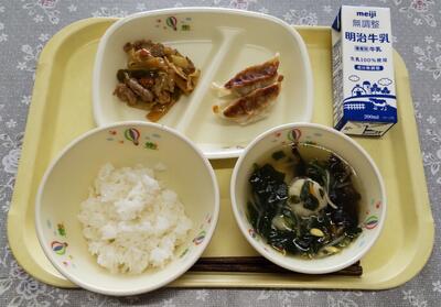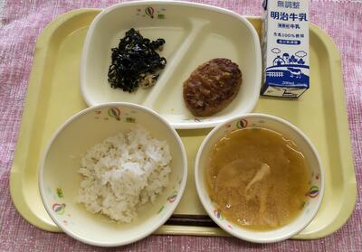 本日の主菜は「ハンバーグステーキ」です。昔、ドイツのハンブルグという地域の人たちが食べていたひき肉と玉ねぎを混ぜて焼いていた「ハンブルグステーキ」という料理が、「ハンバーグステーキ」と呼ばれるようになりました。
