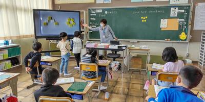 1年生は、大人の人とどんなことに気を付けてお話したらよいか話し合っています。手がたくさん挙がっていますね。丁寧な言葉について学習しています。