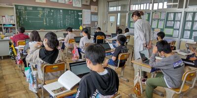 6年生は、「国語」の授業です。登場人物二人のその後について考えていますね。