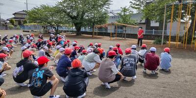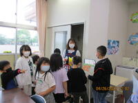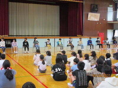 「1年生を迎える会」を行いました。4・5・6年の「1年生を迎える会」実行委員を中心に、計画を立てました。「好きな遊び、頑張りたいことインタビュー」や「メダルのプレゼント」の後は、ふれあい班ごとに「ゲーム」を行いました。学校を探検しながら、先生方を探します。全校生で1年生の入学をお祝いすることができました。