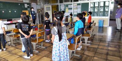 挨拶や「朝の会」などの時間を、英語を使って行うことで、外国語でコミュニケーションをとる楽しさを味わったり、外国の言語や文化に慣れ親しんだりすることができるようにすることを目的としています。