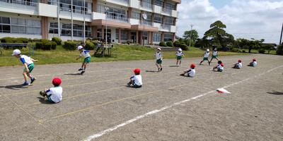 来週の新体力テストに向けて、1年生が、反復横跳びの練習をしました。友達の回数をきちんと数えることができるなんてすごいですね。