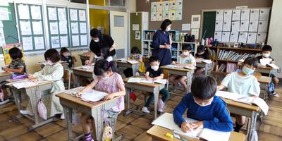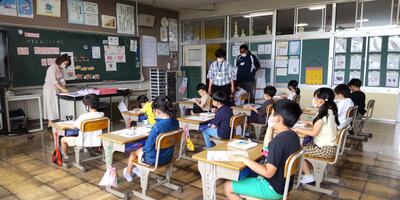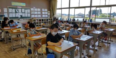 4年生、6年生は、「国語」の授業です。自分の考えをまとめています。4年生は、理由をふまえて、6年生は、事実や感想、意見などをふまえて、自分の考えをまとめていきます。国語の授業は、1年生から6年生まで同じ時期に学年の発達段階を考慮して、授業が進められています。