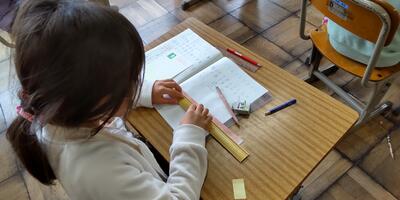 2年生は、「算数」の授業です。今日、はじめて「ものさし」を使いました。