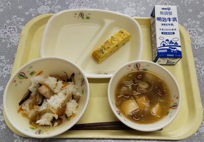 給食で使用しているなめこは、町内産です。なめこのぬるぬるは、オクラや山芋も含まれる「ルチン」という成分で、鼻やのどの粘膜を丈夫にし、風邪の予防だけでなく体の疲れをとる働きがあります。運動会の振替休日後の本日は、体調をくずしている人がいるようです。なめこ汁をいただいて、元気になりたいですね。