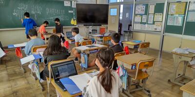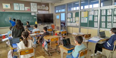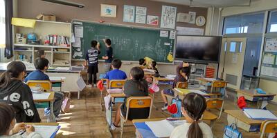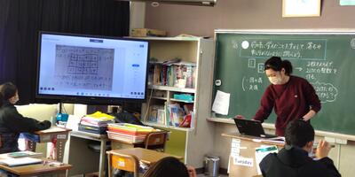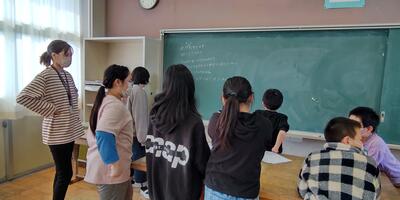 6年生は、「算数」の授業です。自分の考えを表やグラフ、図など、様々な方法で説明しています。