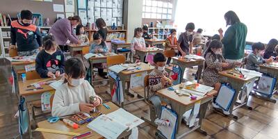 2年生は「国語」の授業です。作り方を読んで馬を完成させるのですね。