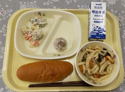 さつま芋は根っこの部分が大きく育ち芋になります。加熱するとイモの中の酵素の働きで甘みが増します。今日は町内で収穫されたおいしいさつま芋を使いサラダにしてくださいました。