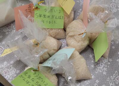 5年生が総合的な学習の時間に取り組んでいる「おいしいお米を作ろう」の授業の一環として、校内限定での、ゆうだい21のお米販売を行いました。