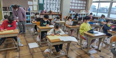 今日のような雨を氷雨というのでしょうか。寒さの厳しい一日となりそうですが、子どもたちは元気です。今年の授業日も残すところ後1日となりました。