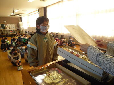 本日は給食で、南瓜(なんきん)、だいこん、にんじん、そしてゆずもいただきました。たくさんの「ん」のつく物をいただいて、抵抗力を高め、「運(うん)」を呼び込みたいと思います。