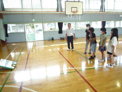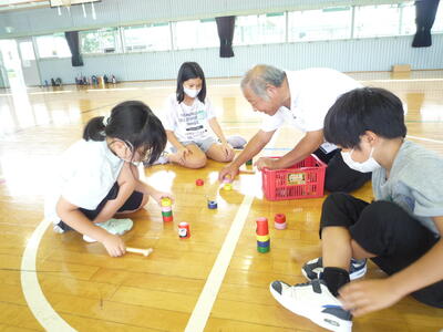 本日の2,3校時、3年生が体育館で地域の方との「ふれあい学習」を行いました。お忙しい中、シニアクラブの7名の方が来てくださいました。竹トンボや輪投げ、コマ回し、だるま落とし、ビー玉など、やり方を教えていただきながら一緒に楽しく活動することができました。シニアクラブの皆さんには、毎年「ふれあい学習」に参加していただいています。今年度もこれから5年生と1年生もお世話になる予定です。日頃なかなか地域の方々との活動ができない中、子ども達にとって本当に貴重な体験だと思っています。今後もよろしくお願いいたします。