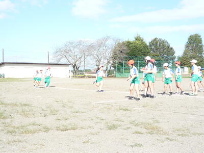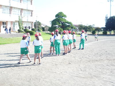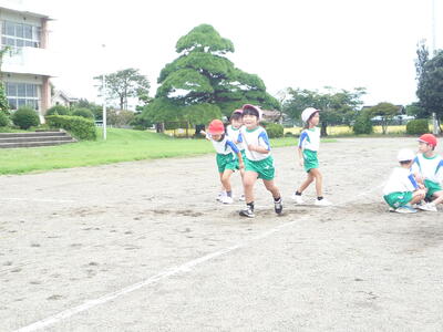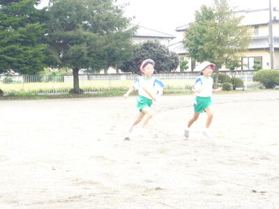 ちょうど1カ月後、10月21日(土)の運動会に向けて、少しずつ準備や練習が進められています。本格的に練習や準備が始まるのは来週からですが、各学年での練習が始まっています。写真は、1年生のリレーの練習の様子です。去年の今頃は、各幼稚園や保育所で運動会の練習をしていたことと思います。入学してから約半年、1年生は体も心も大きく成長しています。