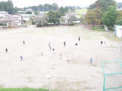 今日は気温もそんなに上がらず、外で遊ぶ子が増えました。(3階図書室ベランダより撮影)