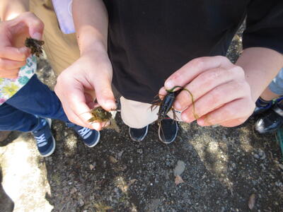ビオトープで遊んでいた子どもたちが、体長5~6cmの大きなタガメを発見しました!
