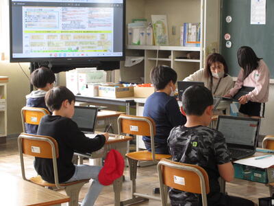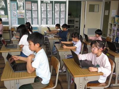 5年生は総合的な学習の時間です。インターネットで「ゆうだい21」について調べました。