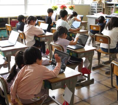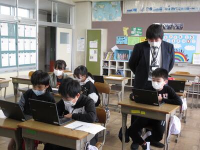 2年生はタブレットを使った算数の学習です。ドリルパークで学習した内容の復習をしていました。