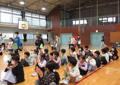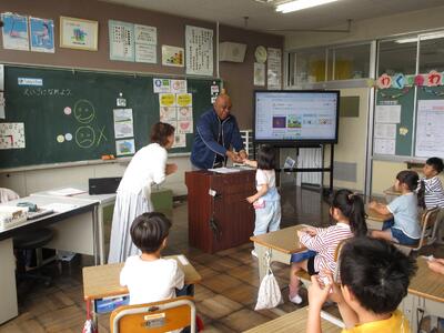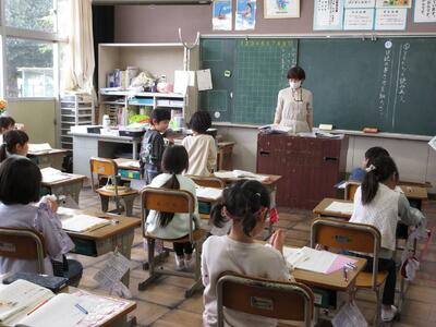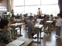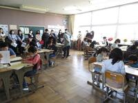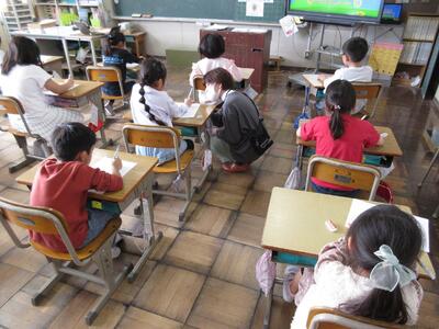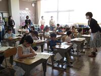 下校前の1年生の教室を訪ねてみると、帰りの会の最中でした。