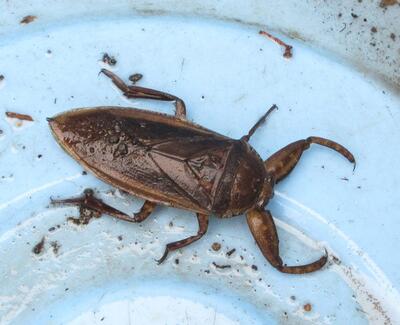 ビオトープで遊んでいた子どもたちが、体長5~6cmの大きなタガメを発見しました!