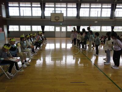今日は、児童会で計画した「1年生をむかえる会」を行いました。