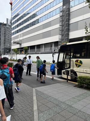 朝食をとり、予定より少し早くホテルを出発しました。みんな元気でキッザニア東京に向かっています。