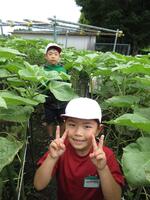 畑の野菜が元気に育っている様子を、2年生が観察しに行きました。