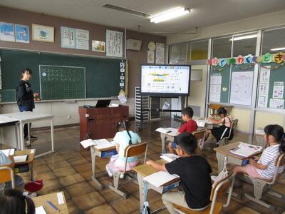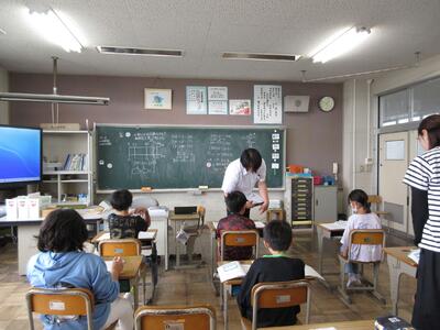 今日は、学力向上コーディネーター、町教育委員会指導主事、学力向上推進リーダーの先生方に来校いただき、2年生と4年生の授業研究会を行いました。
