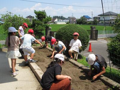 下級生に植え方を教えたり、苗が入っていたポットを進んで回収して片付けたり、自分にできる仕事に率先して取り組んだり・・・。上高根沢小学校の子どもたちのよさを垣間見ることができました。